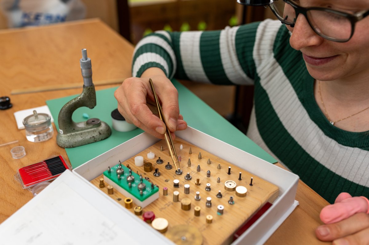 Chacun à votre place de travail, vous apprendrez à démonter, laver, remonter et emboîter votre propre mouvement de travail, en manipulant les outils et techniques utilisés dans l’atelier.